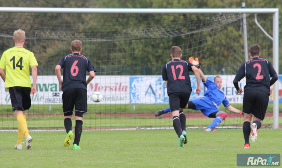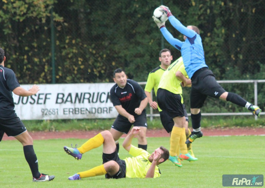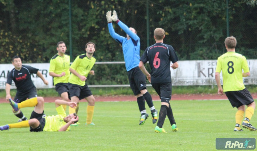 Zwei Tage nach der eher schwachen Leistung im Nachholspiel gegen den SV Neusorg zeigte die Heimelf diesmal eine gleichermaßen starke Vorstellung und ließ dem Tabellenzweiten SC Eschenbach keine Chance. Bereits in der sehr hart geführten Anfangsphase hatte der in dieser Partie überzeugende Peter Tretter zwei gute Einschussmöglichkeiten, der Torpfosten und SC-Keeper Tobias Lehl verhinderten allerdings die frühe Führung für den TSV. Doch bald darauf war es wieder Tretter, der ungehindert durch die Eschenbacher Abwehr marschierte und einen Elfmeter herausholte, den Stürmer Sandro Hösl gewohnt sicher verwandeln konnte. Auch im weiteren Verlauf der ersten Halbzeit spielte nur der TSV Erbendorf nach vorne, die einzige Tormöglichkeit für den SC vereitelte Erbendorf-Torwart Walberer mit einer Glanzparade. Kurz vor der Halbzeitpause sorgte Peter Tretter noch für das verdiente 2:0, nachdem er sich gegen zwei Verteidiger durchsetzen konnte.
